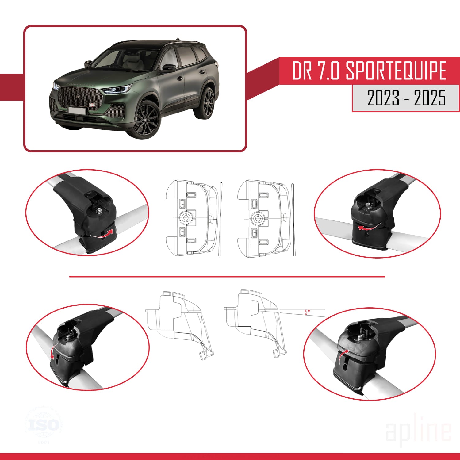 Compatible avec DR 7.0 Sportequipe 7 (It) 2023-2025 ACE-2 Barres de Toit Railing Porte-Bagages de Voiture Gris Aluminium 2 Barres