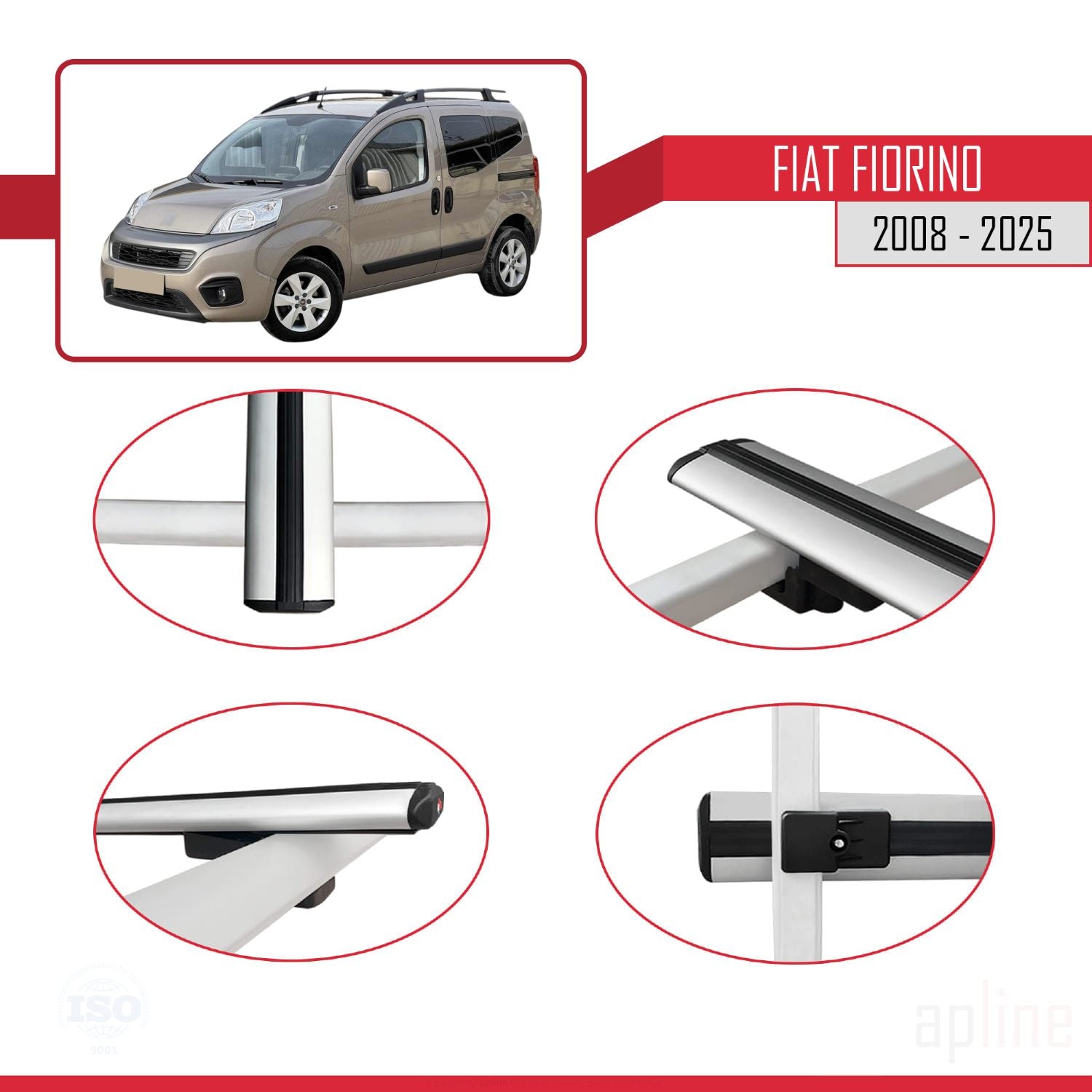 Compatible avec Fiat Fiorino (Modèle Tubulaire) 2008-2025 BASIC Model Barres de Toit Railing Porte-Bagages de Voiture Gris Aluminium 2 Barres
