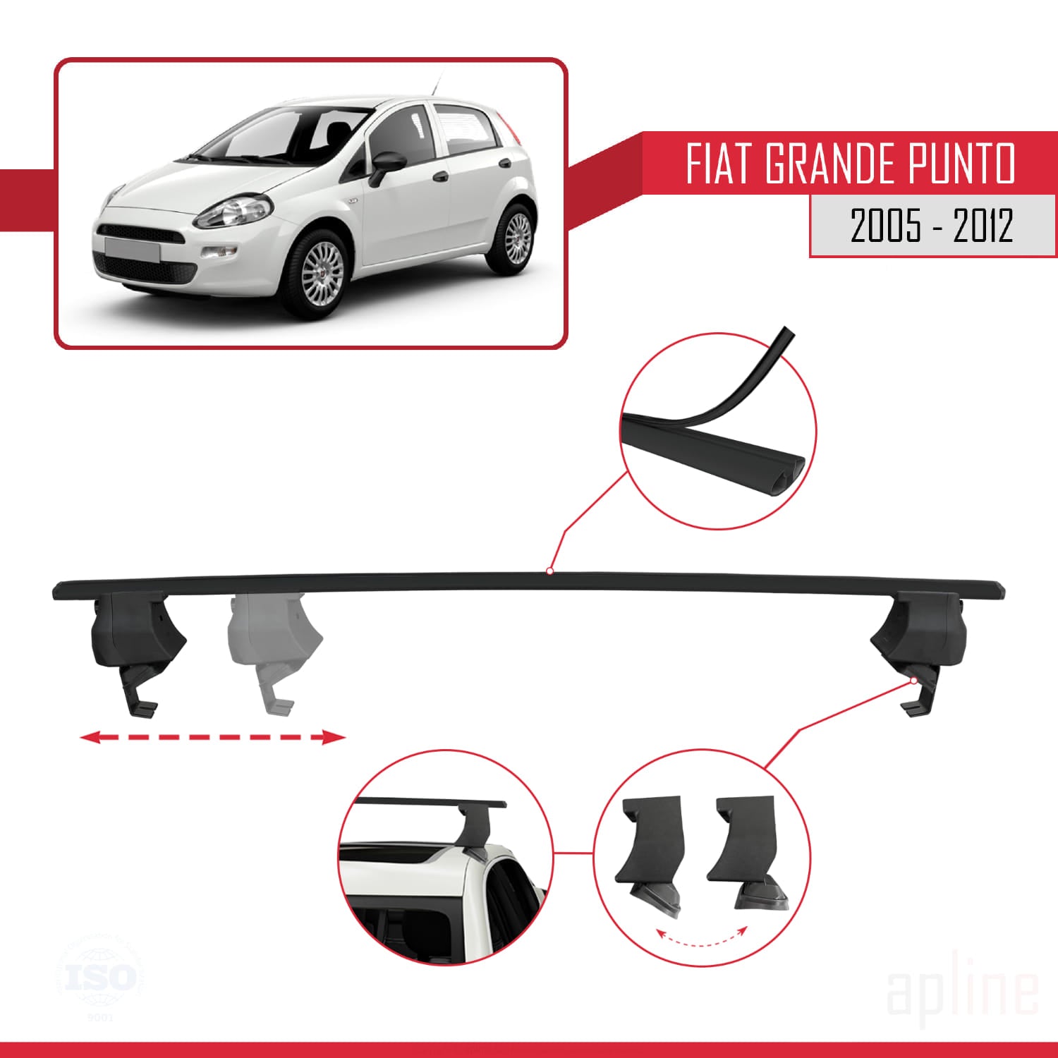 Compatible avec Fiat Grande Punto (199) 2005-2012 ACE-4 Barres de Toit Railing Porte-Bagages de Voiture Noir Aluminium 2 Barres