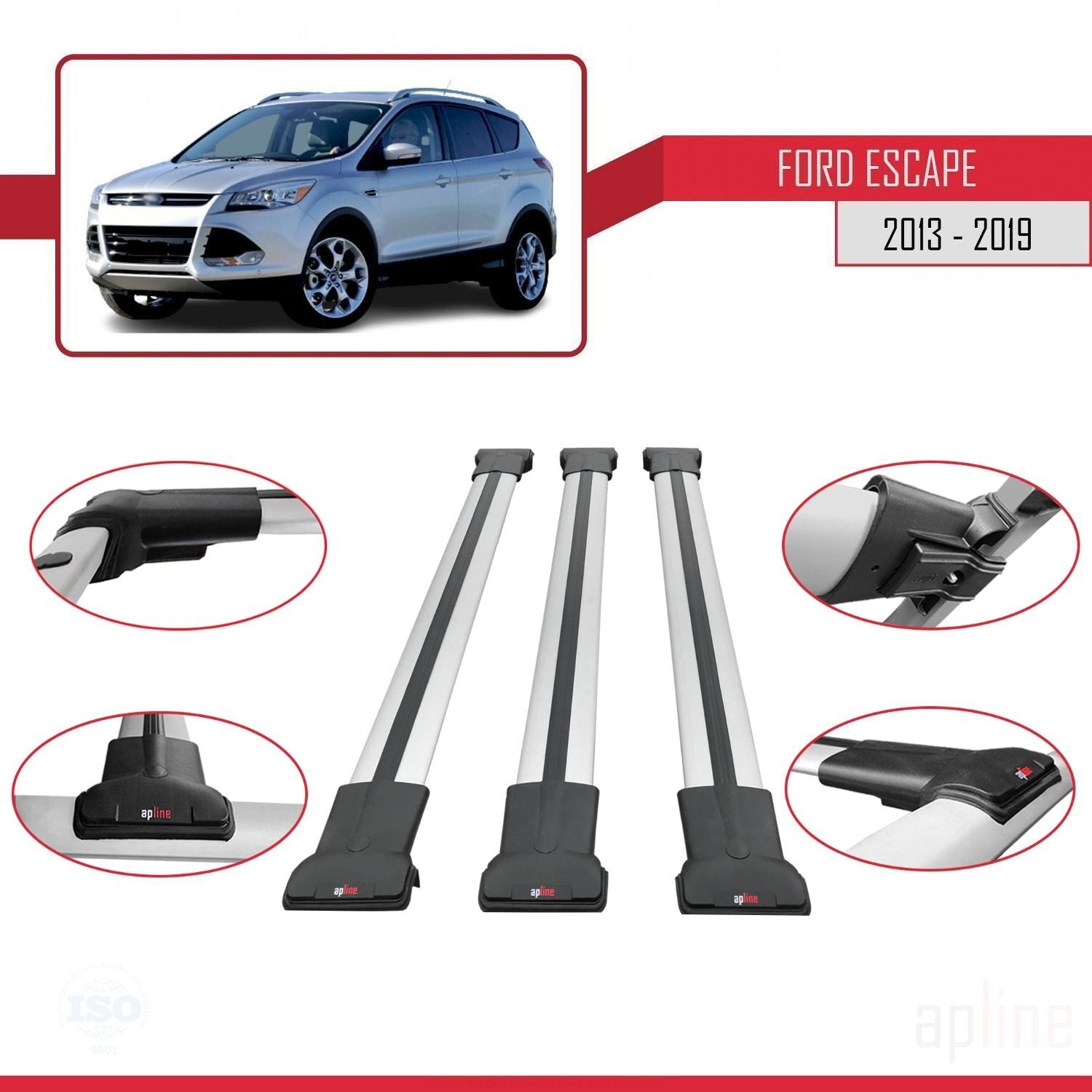 Compatible avec Ford Escape 3 2013-2019 FLY Model Barres de Toit Railing Porte-Bagages de Voiture Gris Aluminium 3 Barres