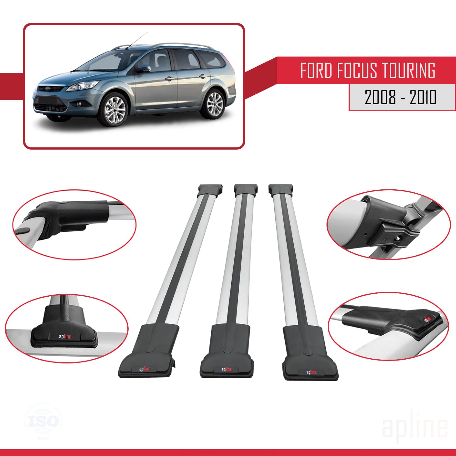 Compatible avec Ford Focus 2 (C307) Turnier 2008-2010 FLY Model Barres de Toit Railing Porte-Bagages de Voiture Gris Aluminium 3 Barres