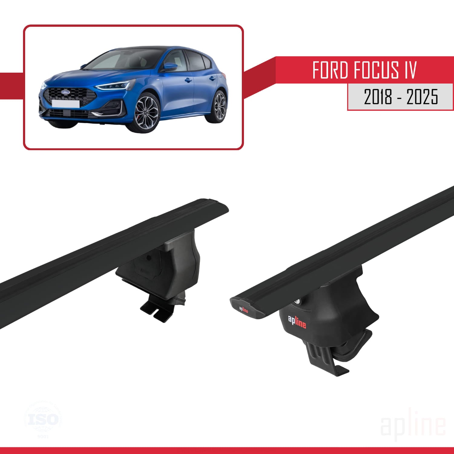 Kompatibel mit Ford Focus 4 (C519) 2018-2025 ACE-4 Relingträger Dachträger Auto Gepäckträger Schwarz Aluminium 2 Stangen