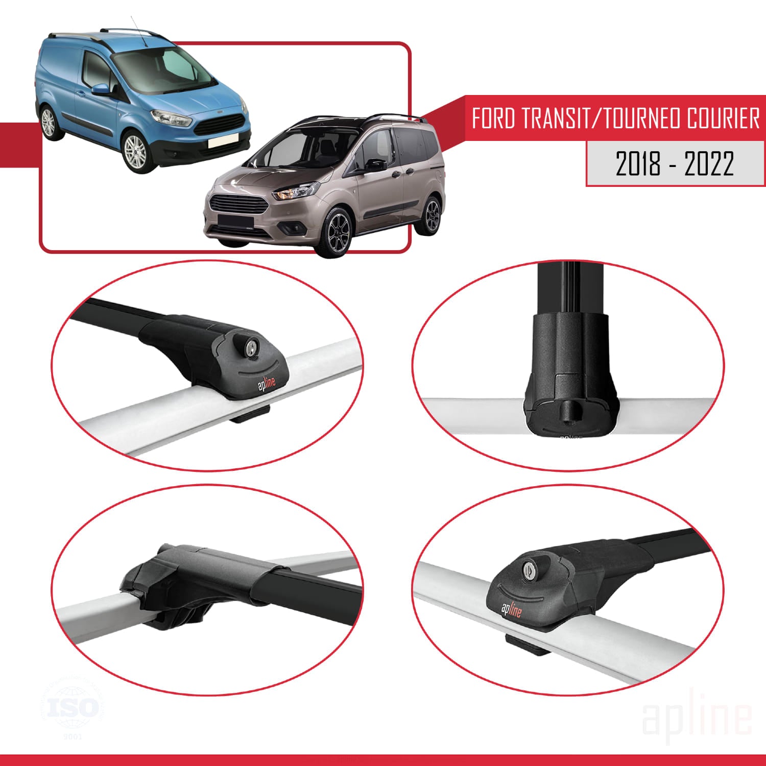 Compatible avec Ford Transit/Tourneo Courier Post-Facelift 2018-2022 ACE-1 Barres de Toit Railing Porte-Bagages de Voiture Noir Aluminium 2 Barres