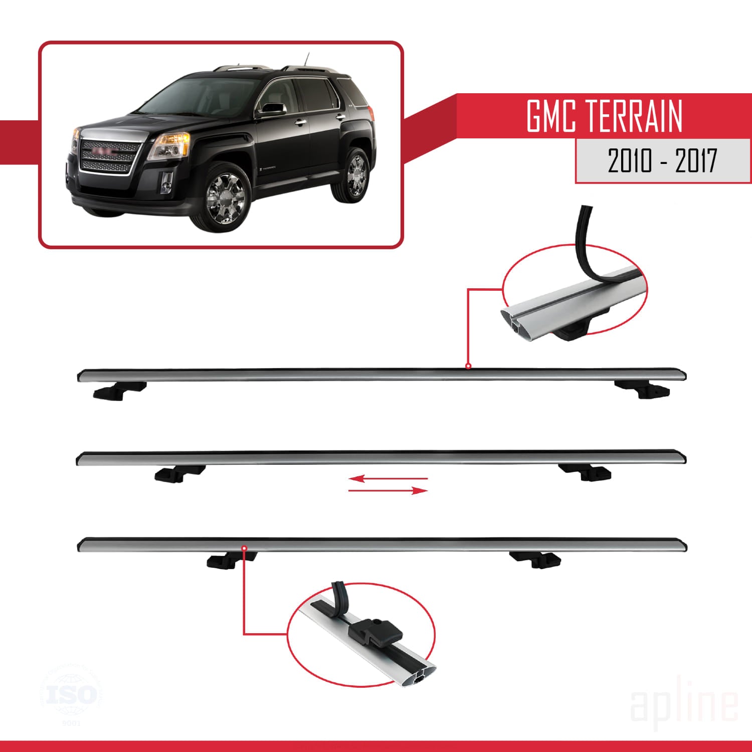 Compatible avec GMC Terrain 2010-2017 BASIC Model Barres de Toit Railing Porte-Bagages de Voiture Gris Aluminium 3 Barres