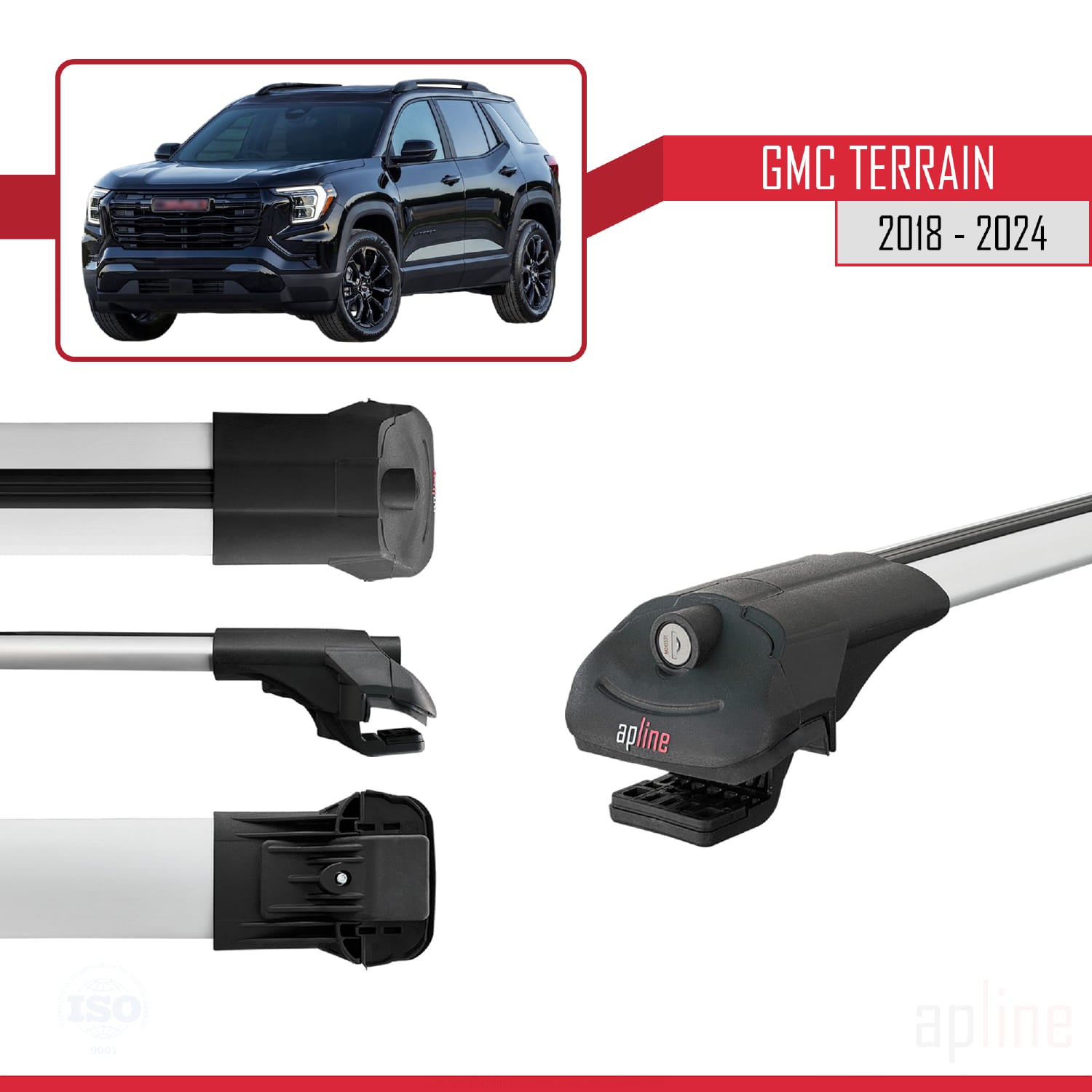 Compatible avec GMC Terrain 2018-2024 ACE-1 Barres de Toit Railing Porte-Bagages de Voiture Gris Aluminium 3 Barres