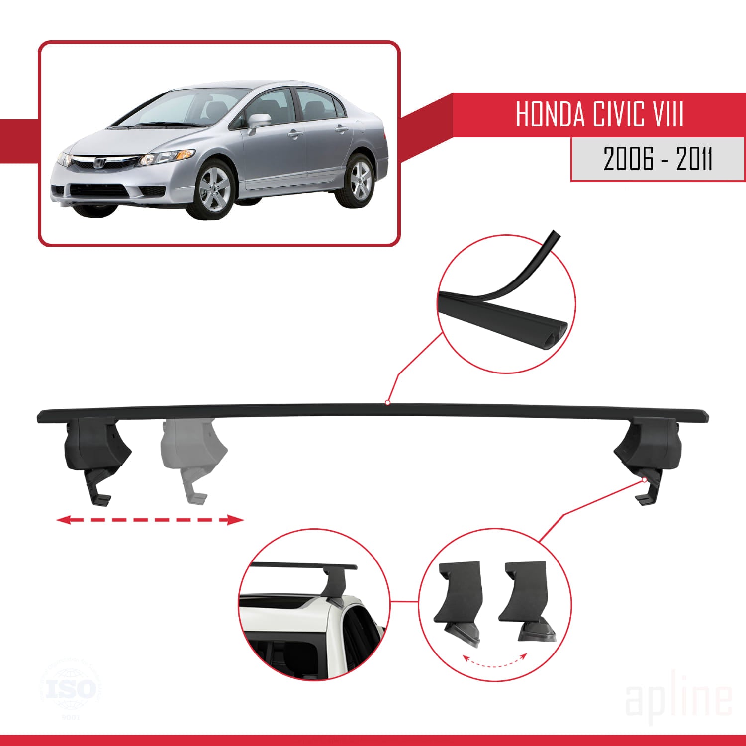 Kompatibel mit Honda Civic 8 V3 Stufenheck 2006-2011 ACE-4 Relingträger Dachträger Auto Gepäckträger Schwarz Aluminium 2 Stangen