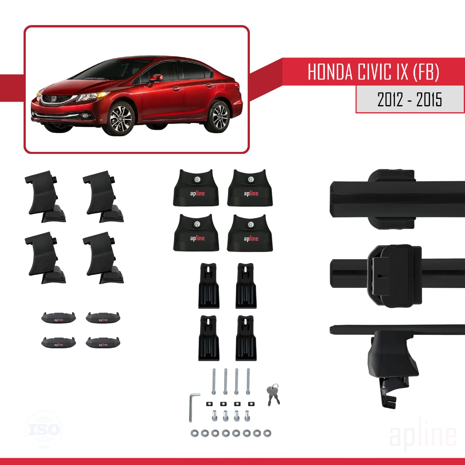 Kompatibel mit Honda Civic 9 (FB) Stufenheck 2012-2015 ACE-4 Relingträger Dachträger Auto Gepäckträger Schwarz Aluminium 2 Stangen
