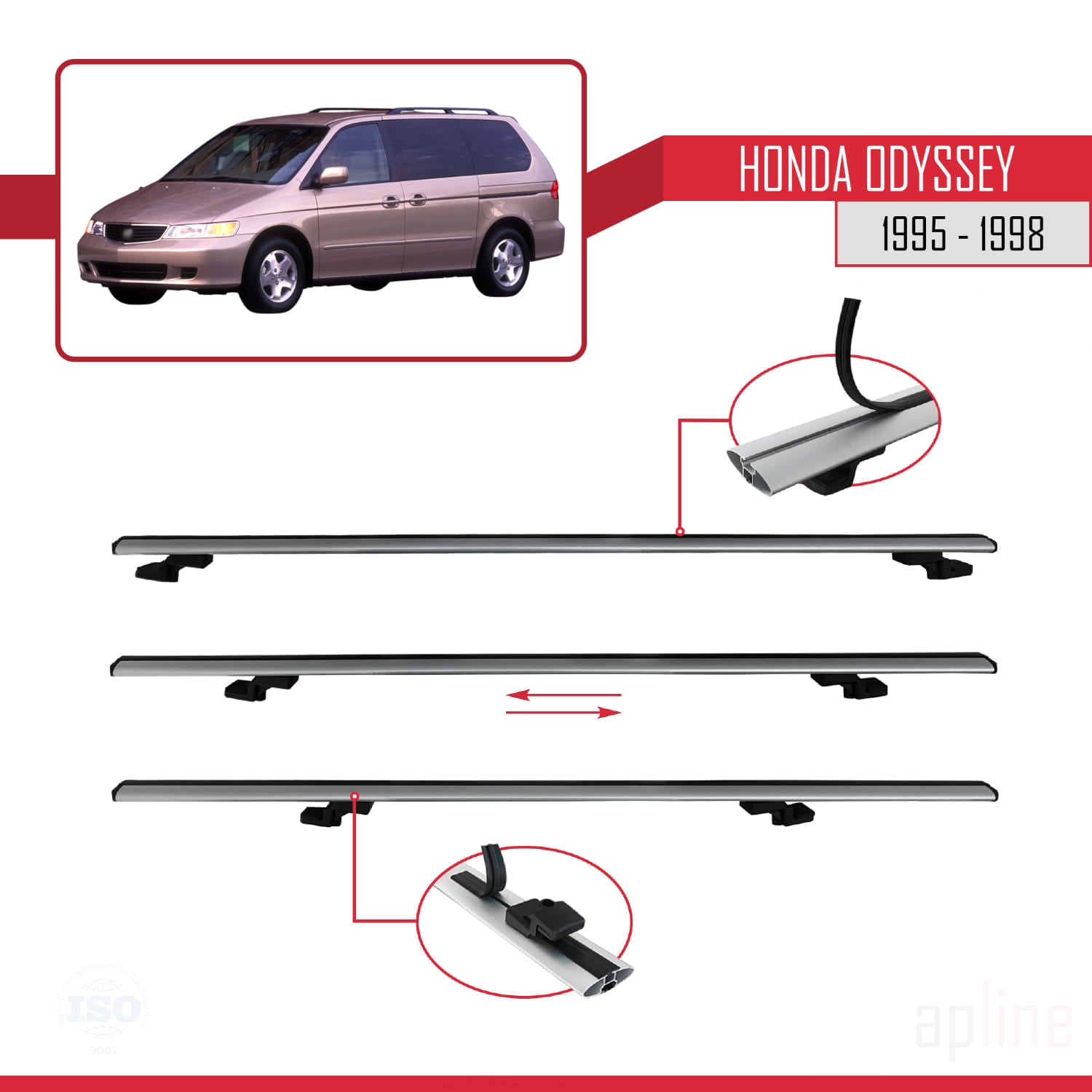 Compatible avec Honda Odyssey 1995-1998 BASIC Model Barres de Toit Railing Porte-Bagages de Voiture Gris Aluminium 3 Barres