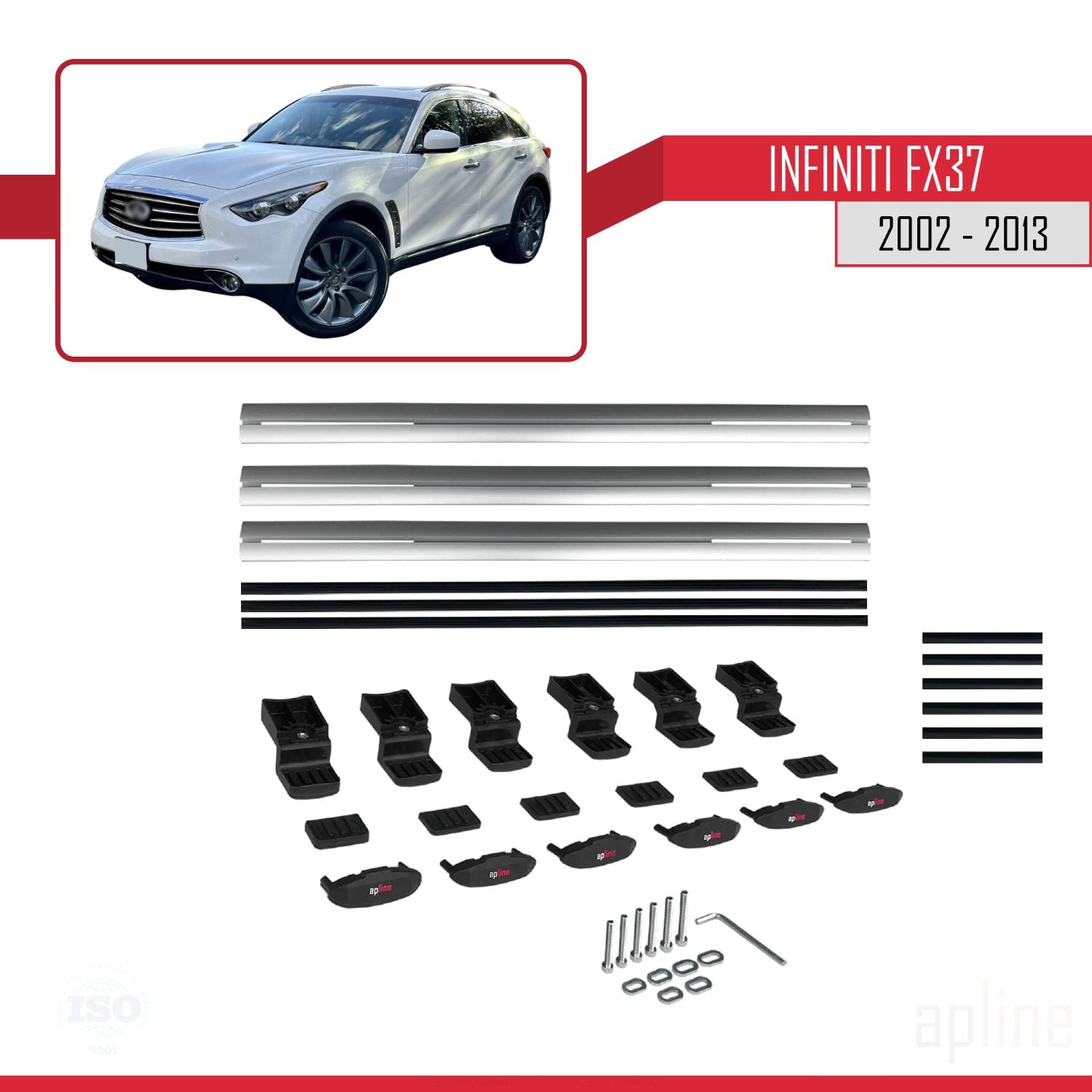 Compatible avec Infiniti FX37 2002-2013 BASIC Model Barres de Toit Railing Porte-Bagages de Voiture Gris Aluminium 3 Barres