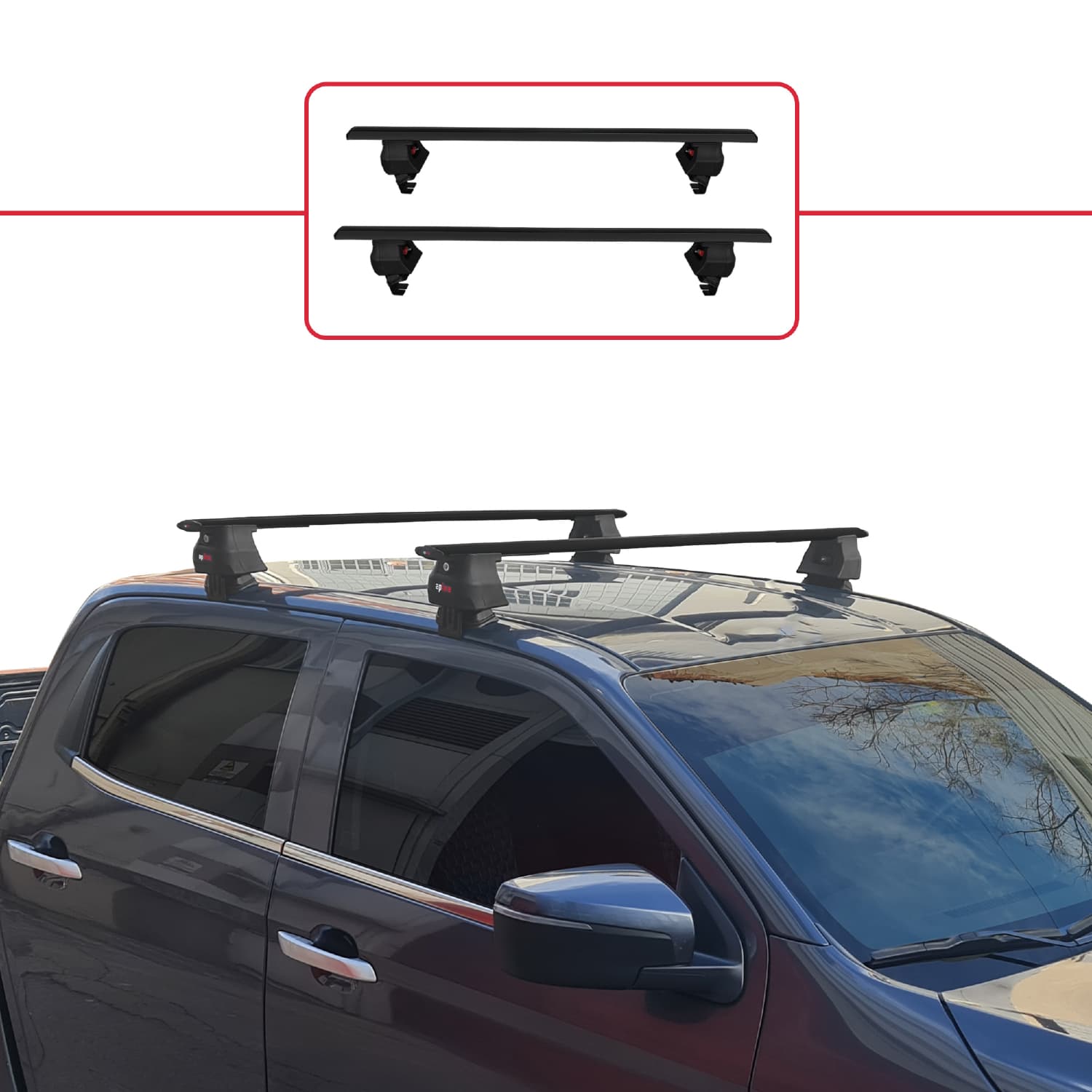 Compatible avec Isuzu D-Max 3 (RG01) 2020-2025 ACE-4 Barres de Toit Railing Porte-Bagages de Voiture Noir Aluminium 2 Barres