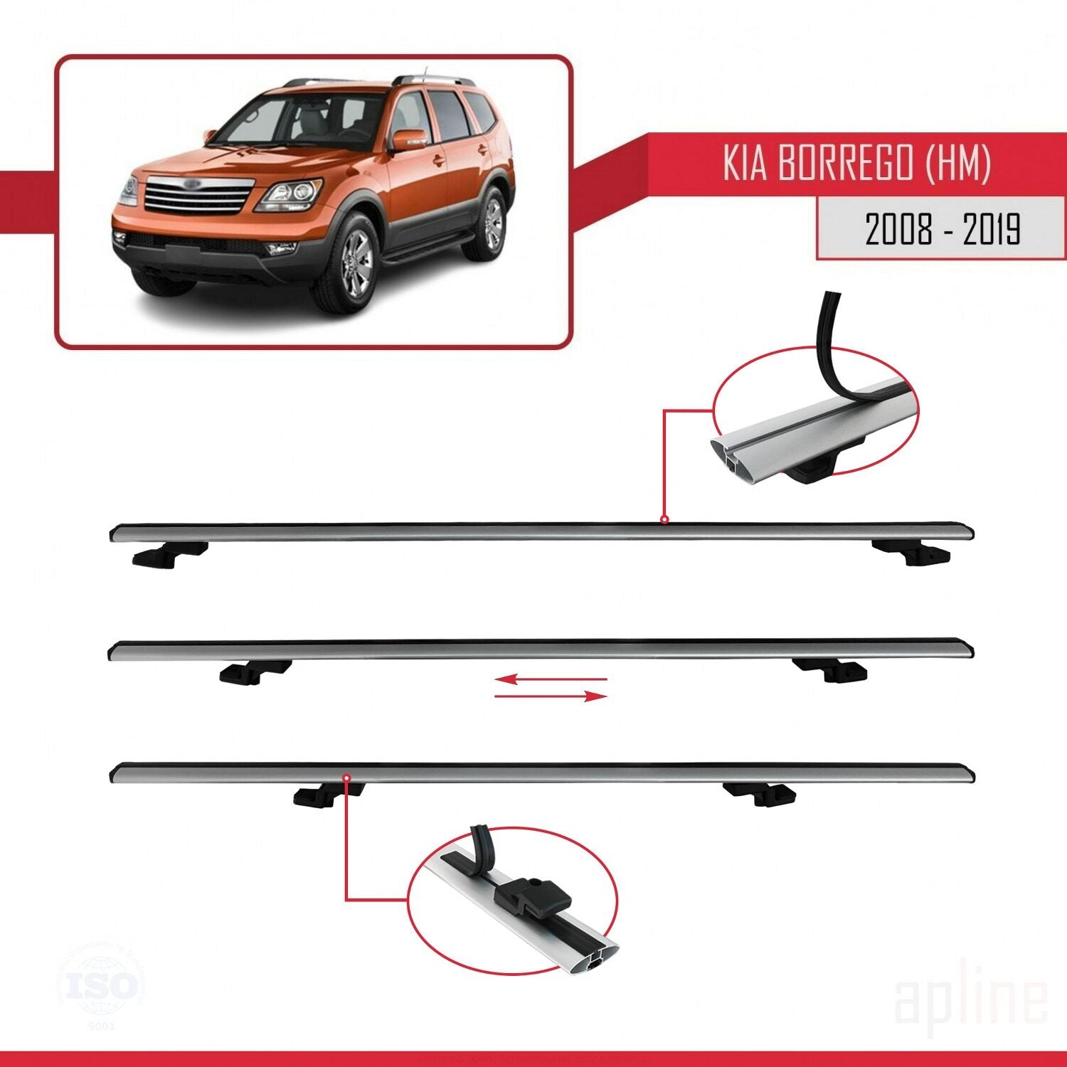 Compatible avec Kia Borrego (HM) 2008-2019 BASIC Model Barres de Toit Railing Porte-Bagages de Voiture Gris Aluminium 2 Barres