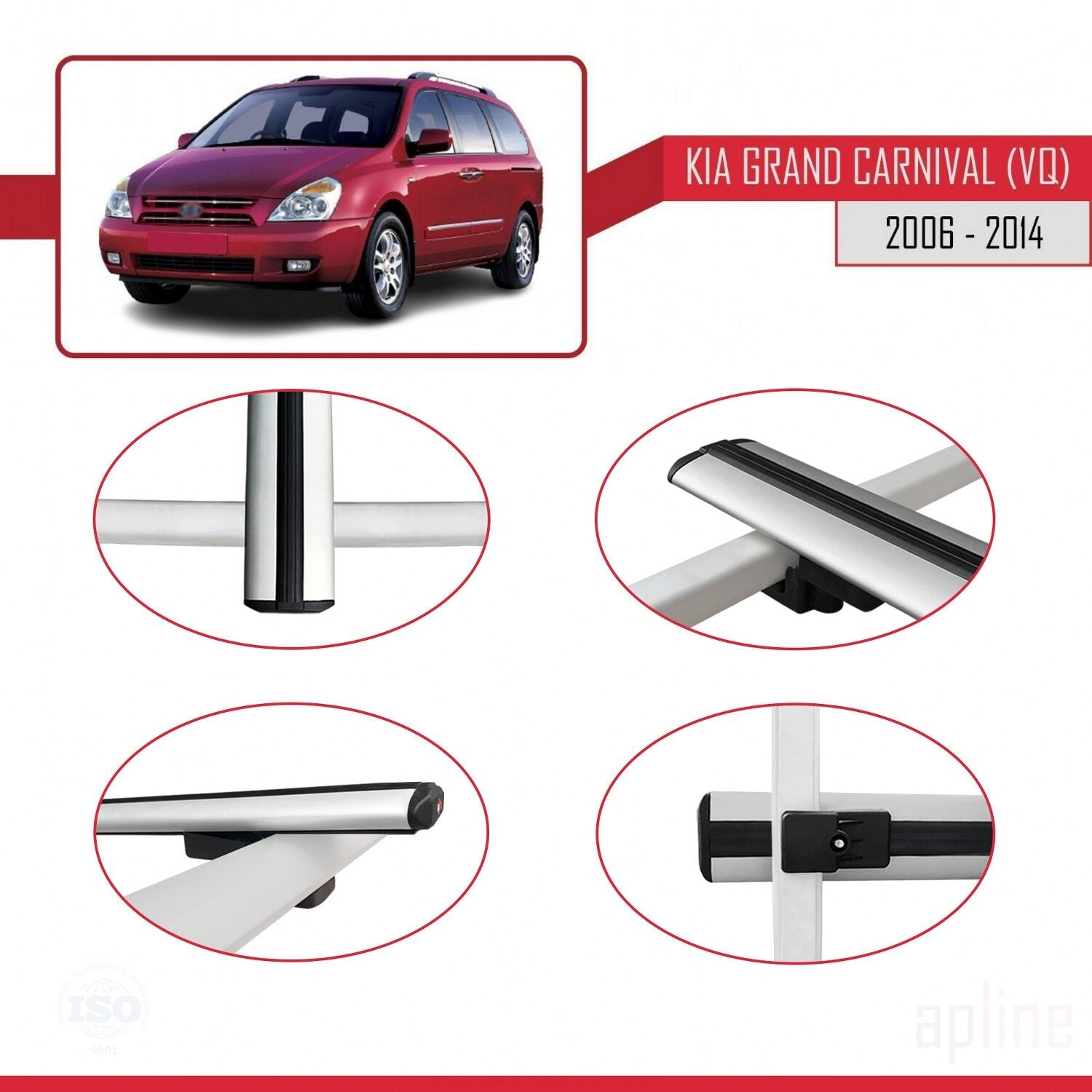 Compatible avec Kia Carnival 2 (VQ) 2006-2014 BASIC Model Barres de Toit Railing Porte-Bagages de Voiture Gris Aluminium 2 Barres