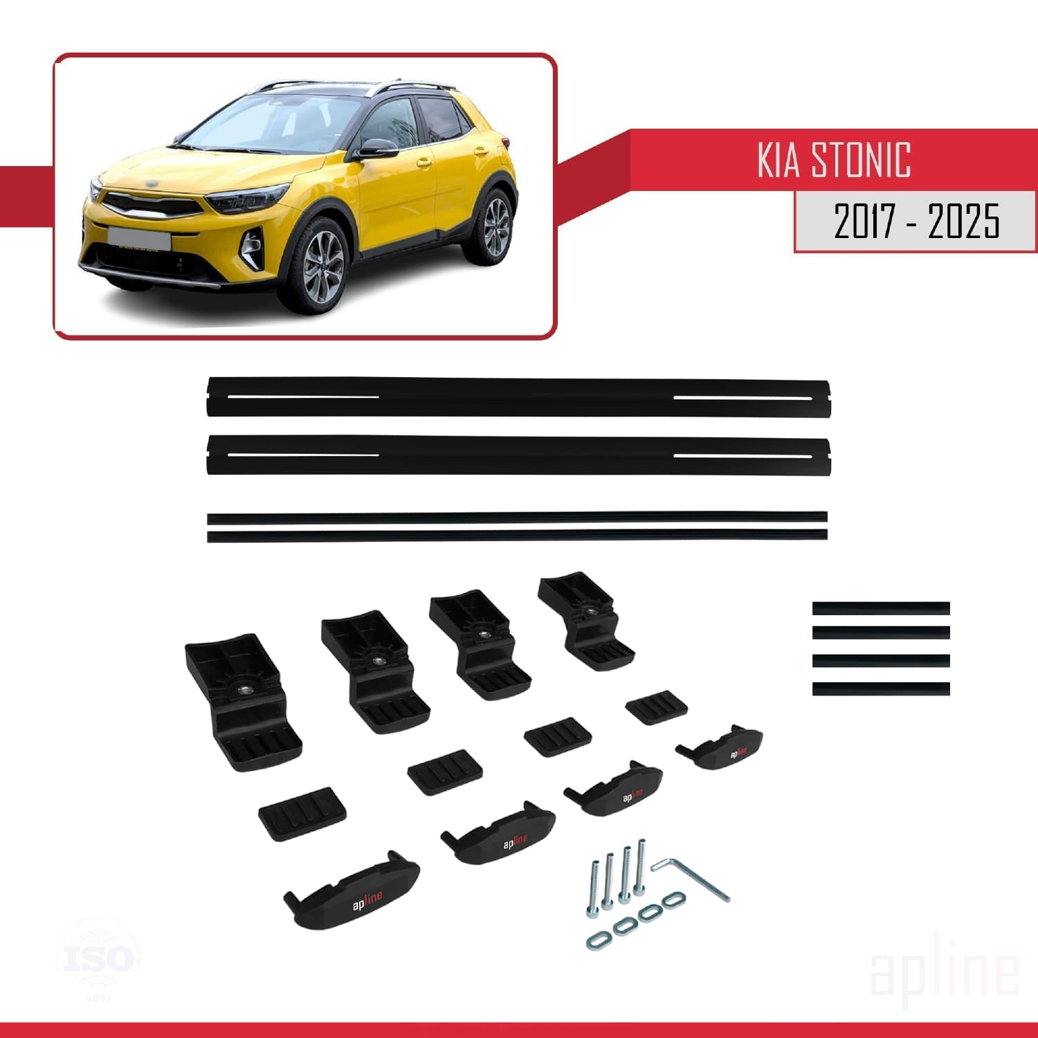 Compatible avec Kia Stonic 2017-2025 BASIC Model Barres de Toit Railing Porte-Bagages de Voiture Noir Aluminium 2 Barres