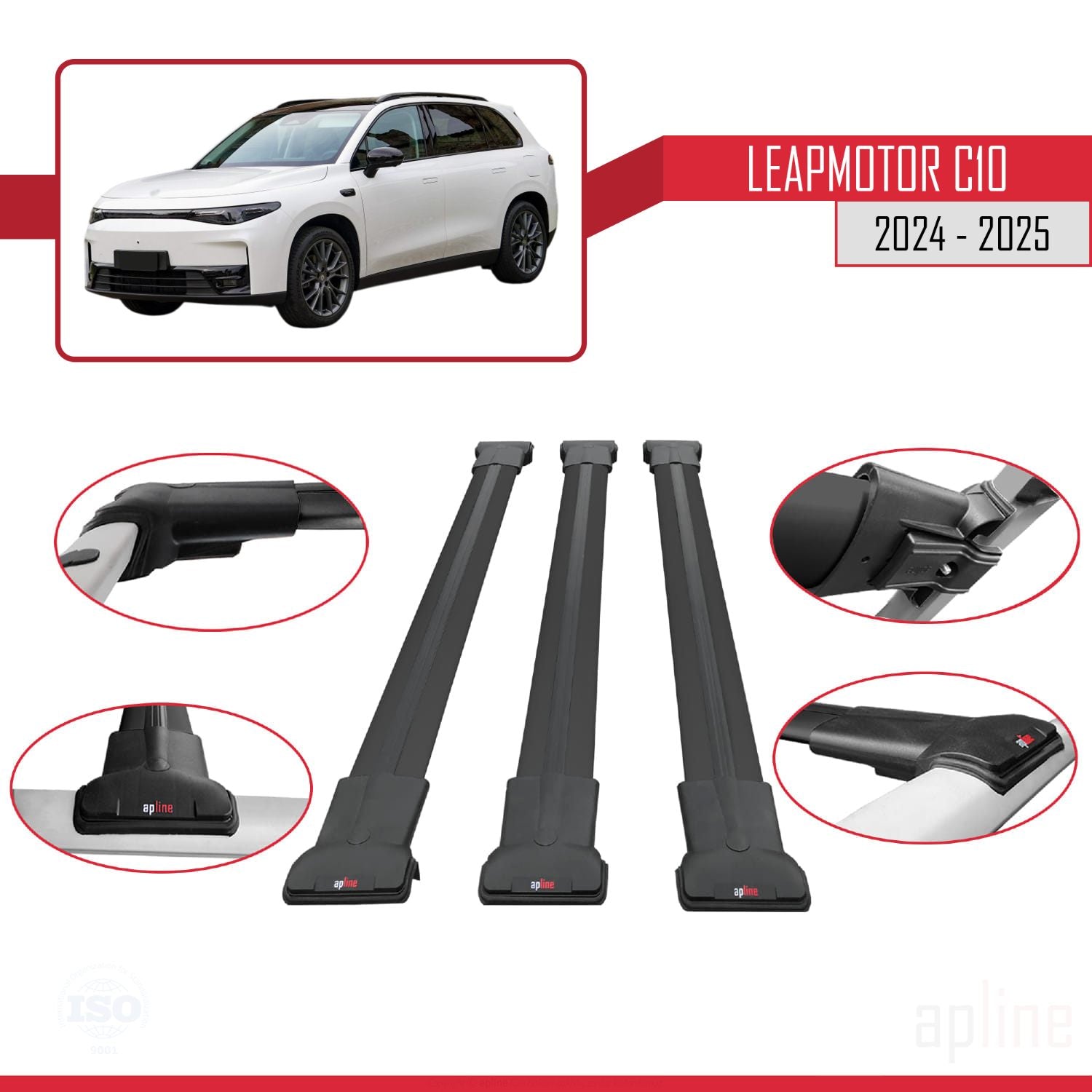 Compatible avec LEAPMOTOR C10 2024-2025 FLY Model Barres de Toit Railing Porte-Bagages de Voiture Noir Aluminium 3 Barres