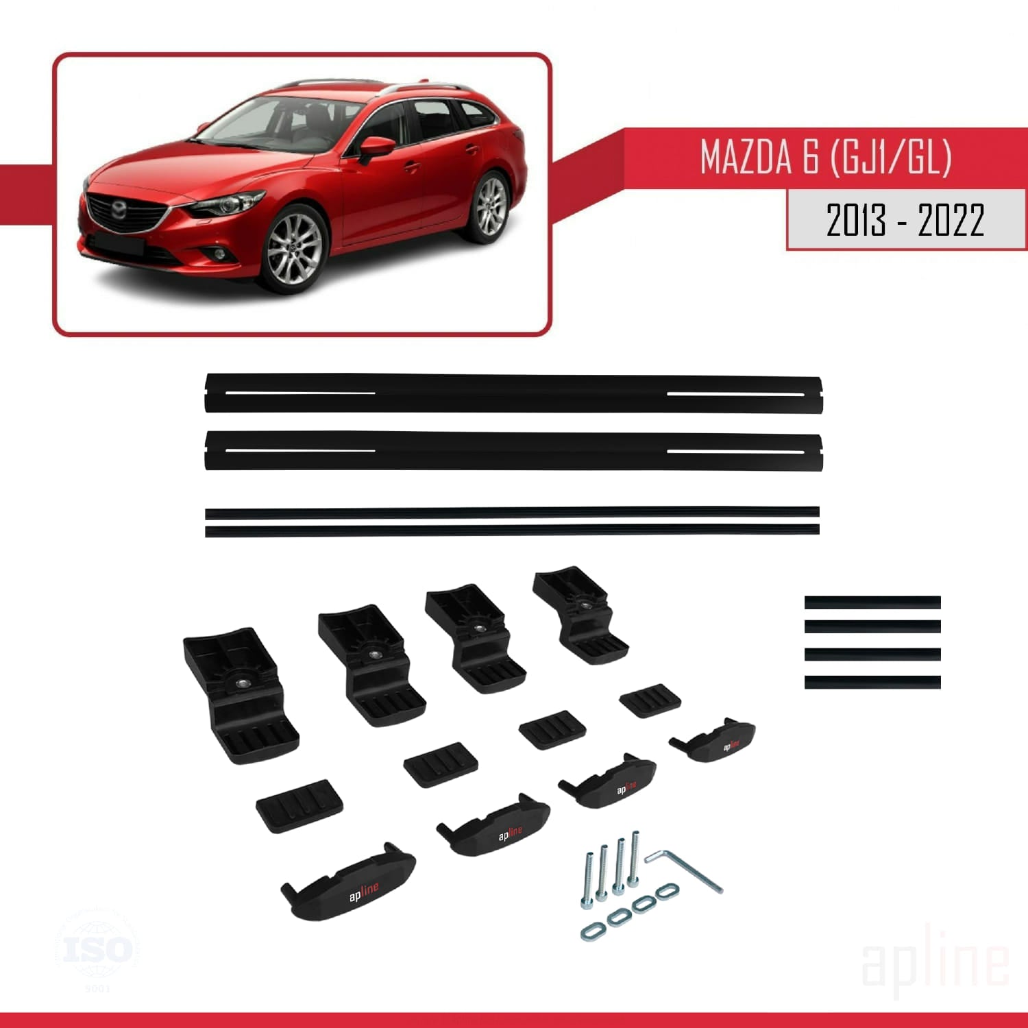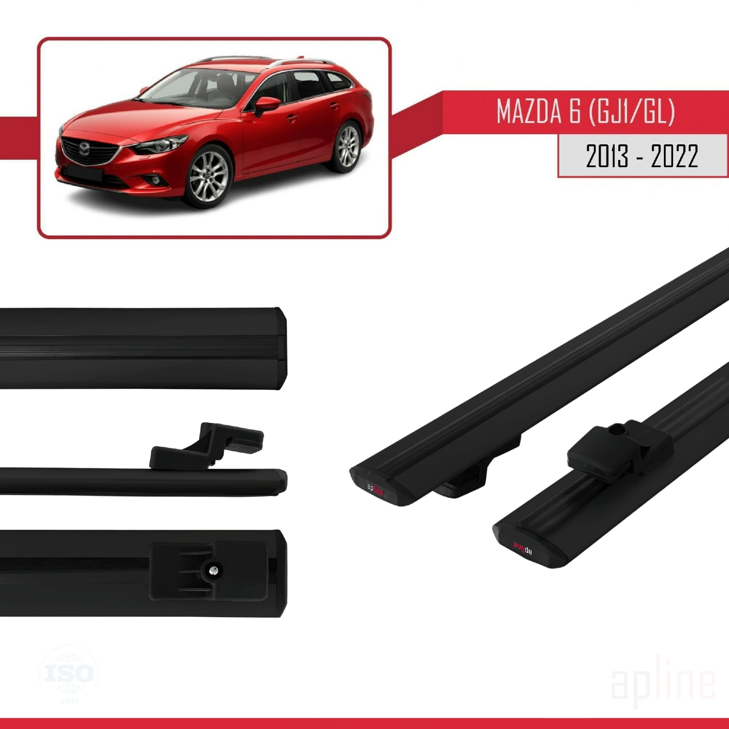 Compatible avec Mazda 6 III (GJ1/GL) 2013-2022 BASIC Model Barres de Toit Railing Porte-Bagages de Voiture Noir Aluminium 2 Barres