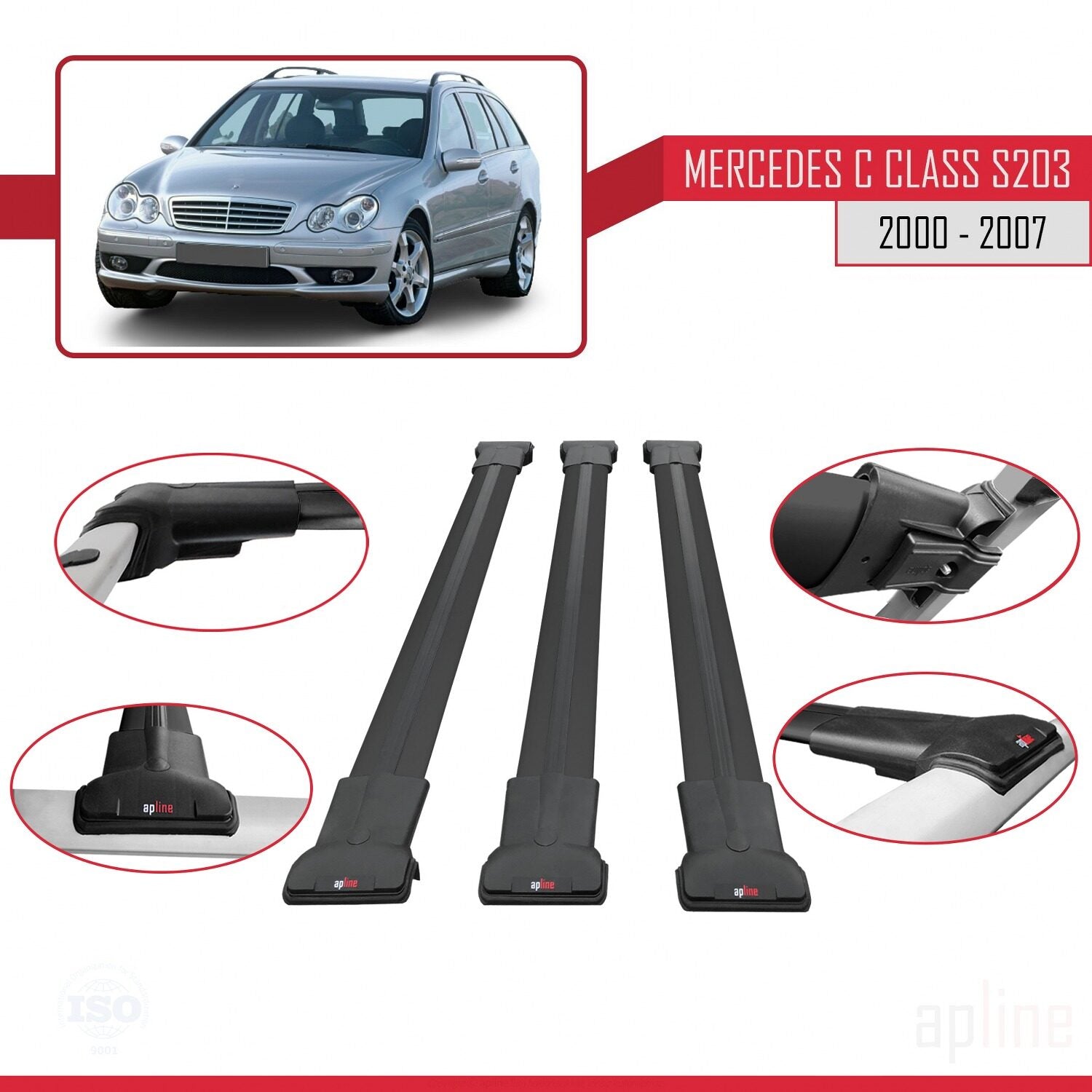 Compatible avec Mercedes Classe C 2 (S203) 2000-2007 FLY Model Barres de Toit Railing Porte-Bagages de Voiture Noir Aluminium 3 Barres