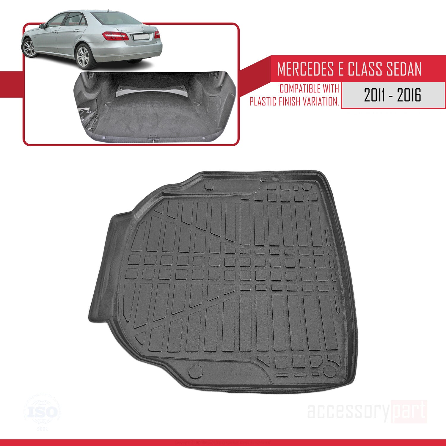 Compatible avec Mercedes Classe E 4 (W212) 2010-2015 Flexible Tapis de Coffre Plancher de Chargement Noir