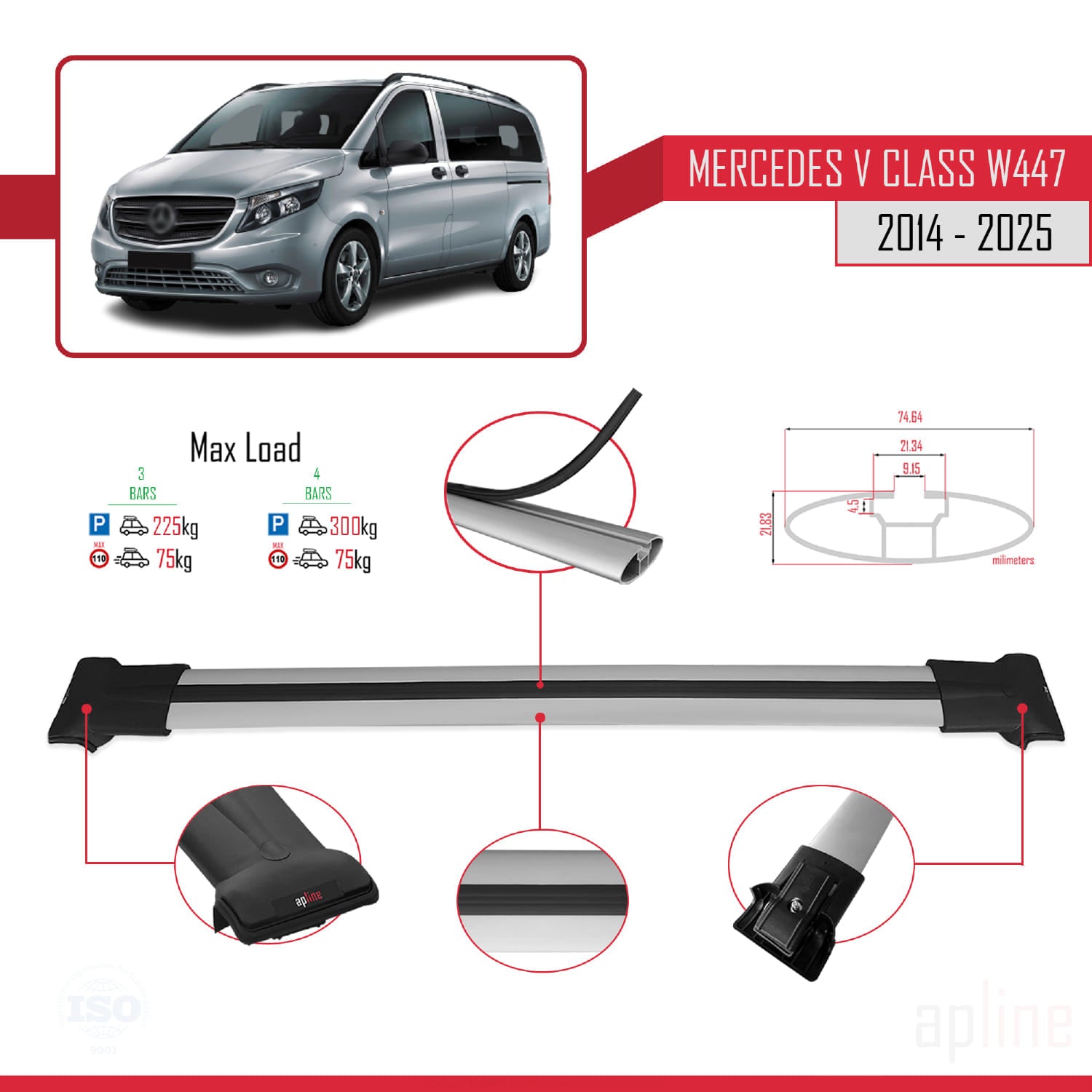 Compatible avec Mercedes Classe V 3 (W447) 2014-2025 FLY Model Barres de Toit Railing Porte-Bagages de Voiture Gris Aluminium 3 Barres