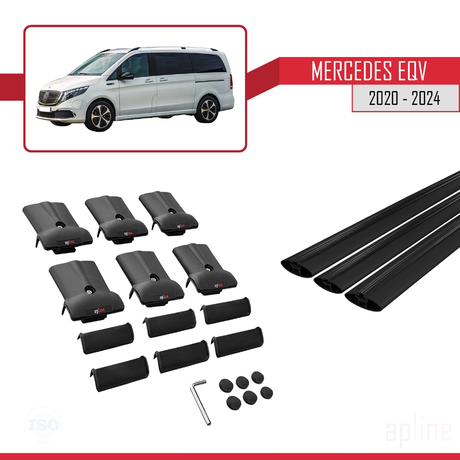 Compatible avec Mercedes EQV (W447) 2020-2025 FLY Model Barres de Toit Railing Porte-Bagages de Voiture Noir Aluminium 3 Barres