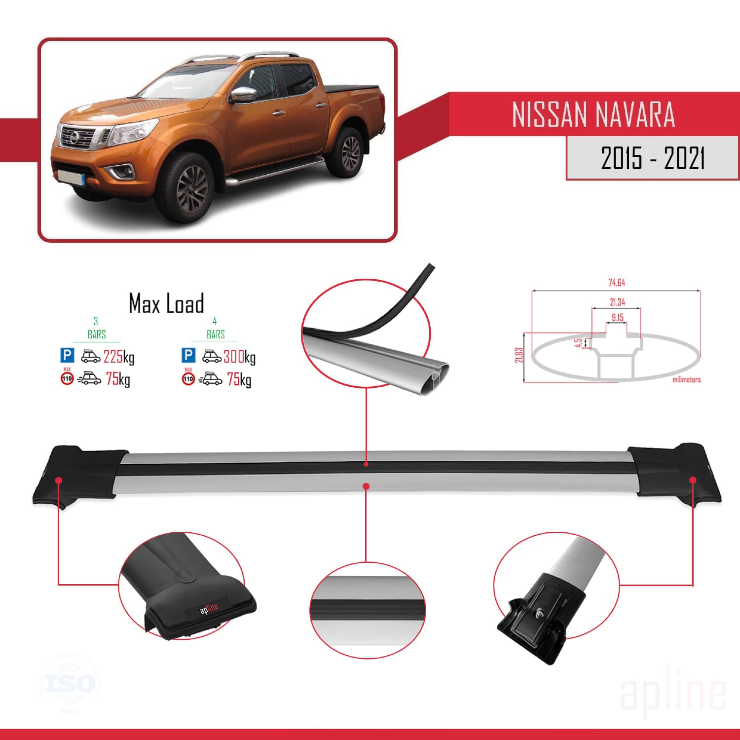 Il est utilisé pour transporter des charges sur votre véhicule. Il est nécessaire pour l'assemblage du porte-vélos, du porte-skis, du coffre de toit, etc. Ce produit se monte sur les barres de toit du véhicule. Ce produit ne peut pas être utilisé dans les véhicules sans barres de toit. Il est compatible avec les modèles présentant un espace entre le toit du véhicule et les barres de toit.