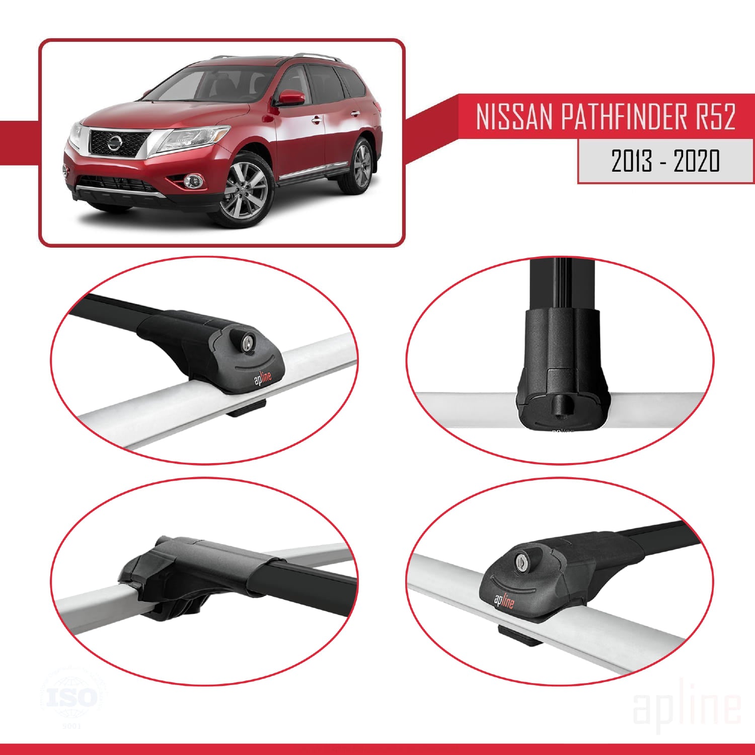 Compatible avec Nissan Pathfinder 4 (R52) 2013-2020 ACE-1 Barres de Toit Railing Porte-Bagages de Voiture Noir Aluminium 2 Barres