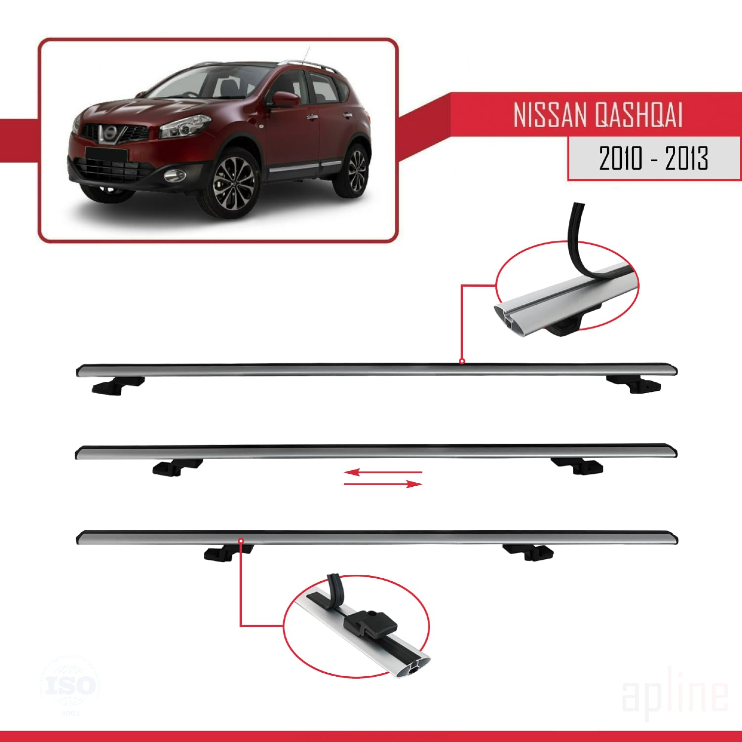 Compatible avec Nissan Qashqai (J10) Post-Facelift 2010-2013 BASIC Model Barres de Toit Railing Porte-Bagages de Voiture Gris Aluminium 2 Barres