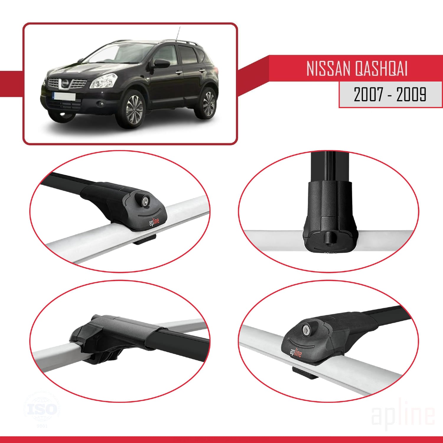 Compatible avec Nissan Qashqai (J10) Pre-Facelift 2007-2009 ACE-1 Barres de Toit Railing Porte-Bagages de Voiture Noir Aluminium 2 Barres