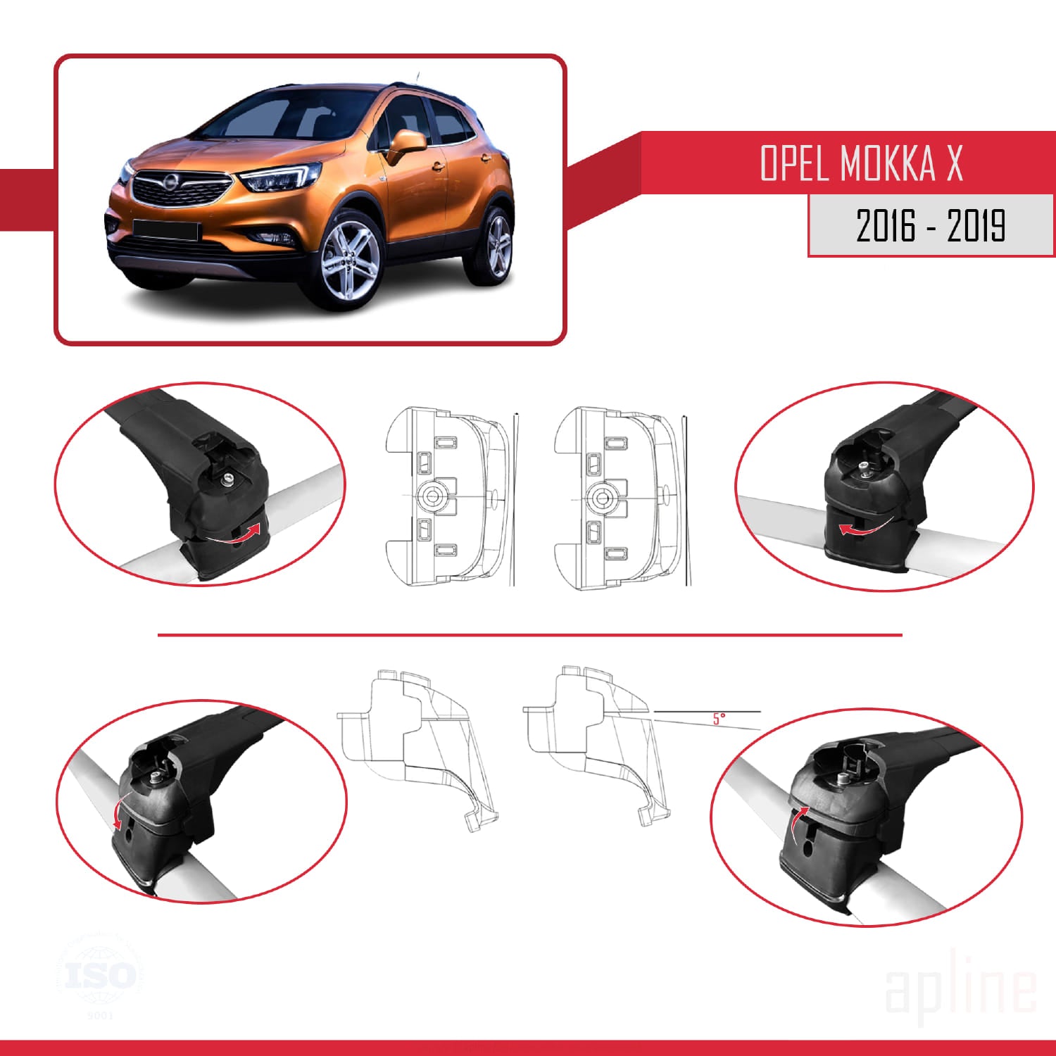 Compatible avec Opel Mokka X (J13) 2016-2019 ACE-2 Barres de Toit Railing Porte-Bagages de Voiture Noir Aluminium 2 Barres
