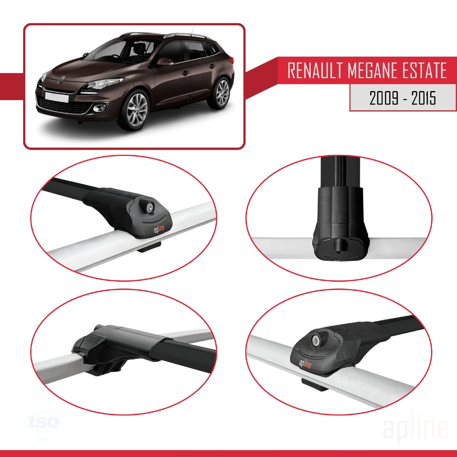 Compatible avec Renault Megane 3 ST 2009-2015 ACE-1 Barres de Toit Railing Porte-Bagages de Voiture Noir Aluminium 2 Barres