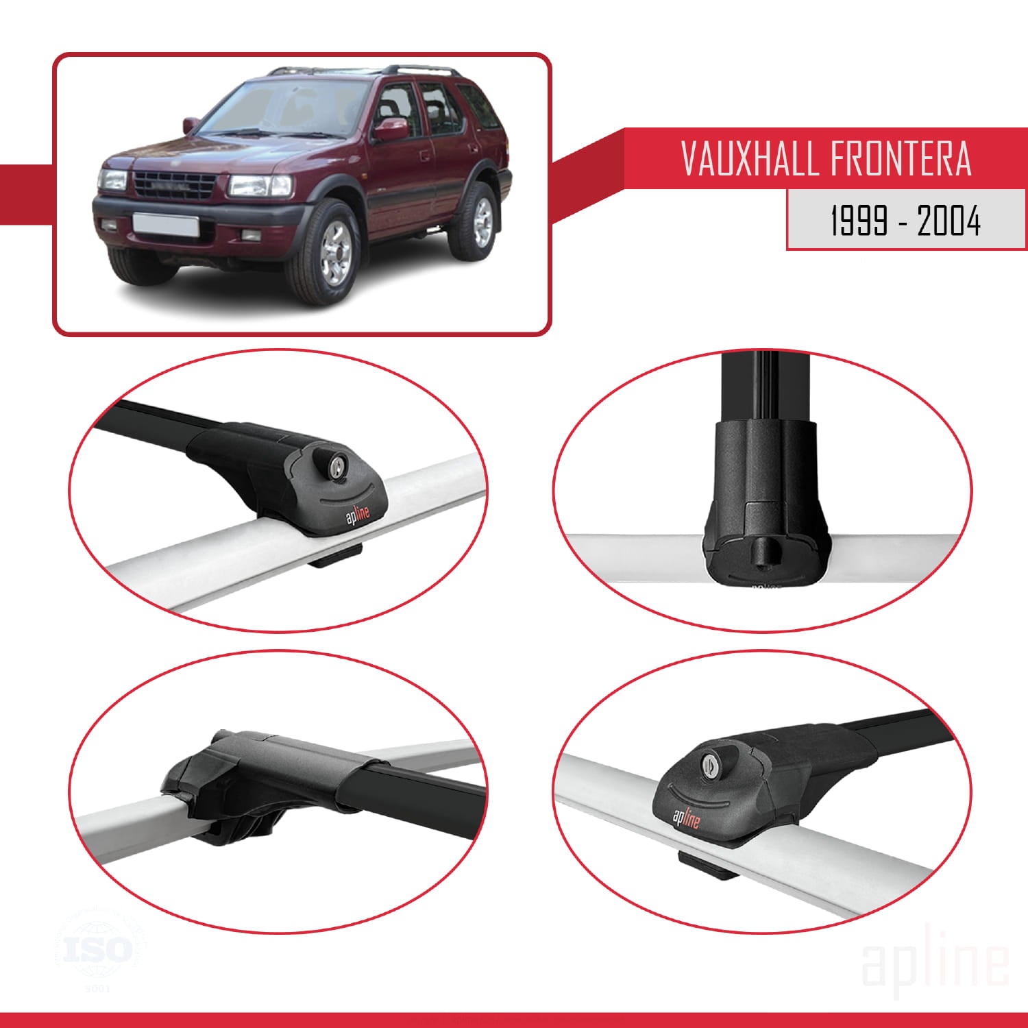 Compatible avec Vauxhall Frontera 2 1999-2004 ACE-1 Barres de Toit Railing Porte-Bagages de Voiture Noir Aluminium 2 Barres