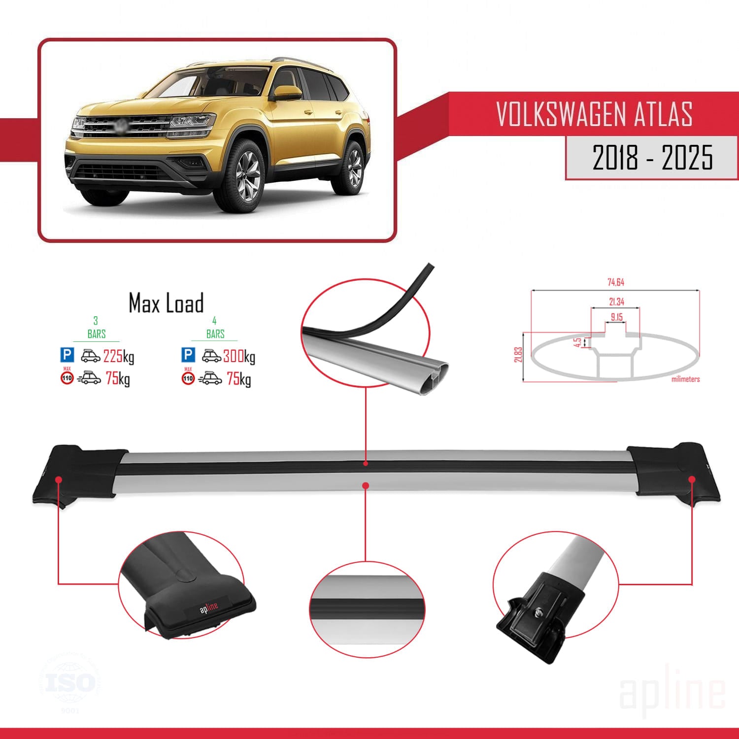 Compatible avec Volkswagen Atlas (CA1) 2018-2025 FLY Model Barres de Toit Railing Porte-Bagages de Voiture Gris Aluminium 3 Barres