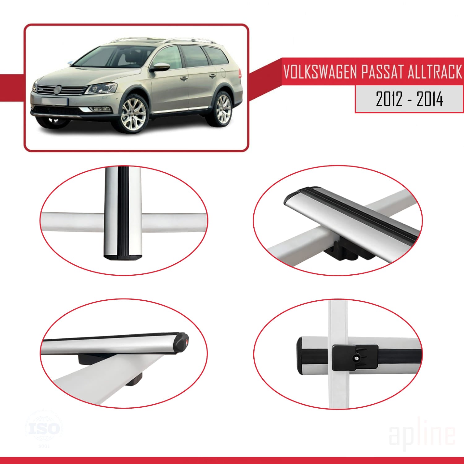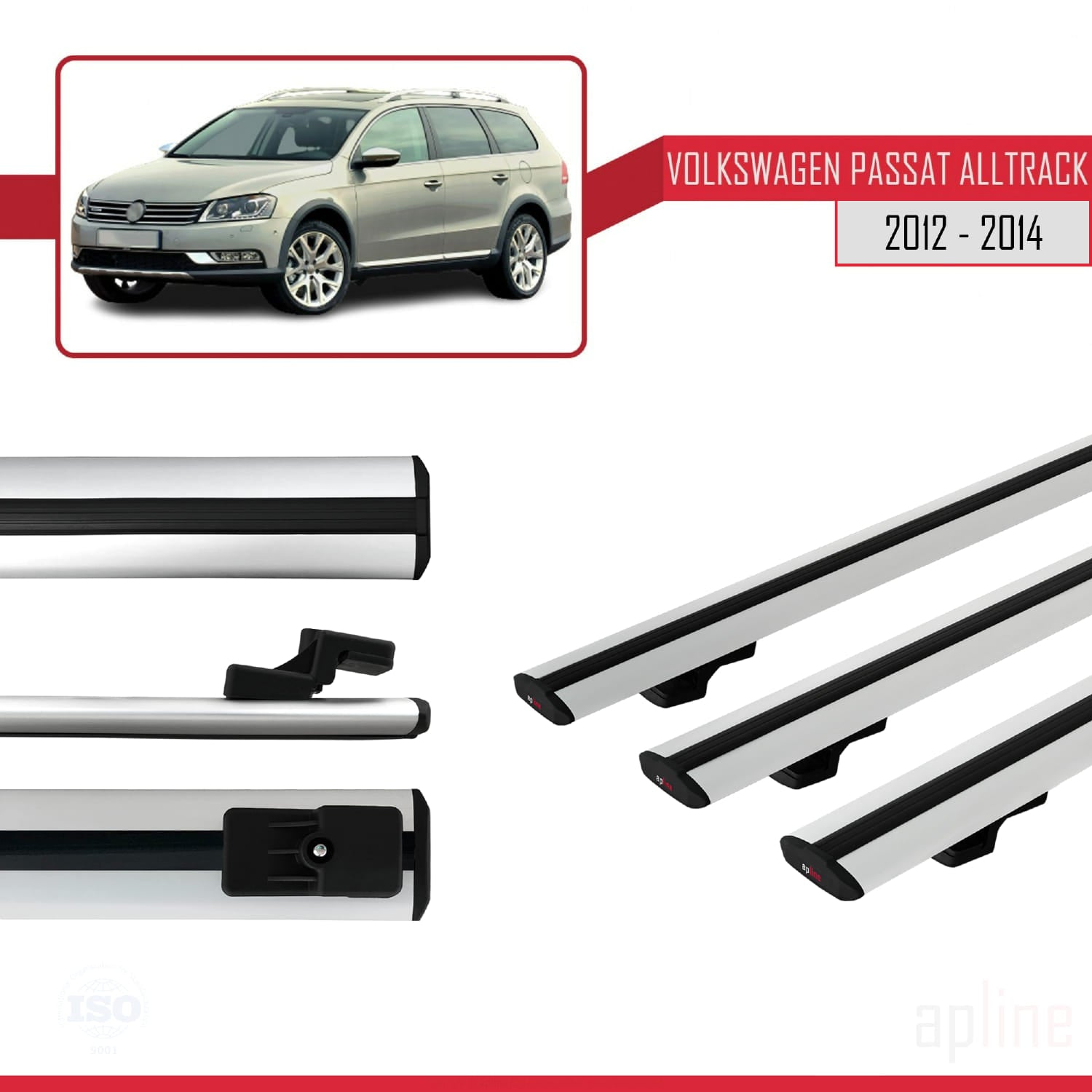 Compatible avec Volkswagen Passat B7 (3C) Alltrack 2012-2014 BASIC Model Barres de Toit Railing Porte-Bagages de Voiture Gris Aluminium 3 Barres
