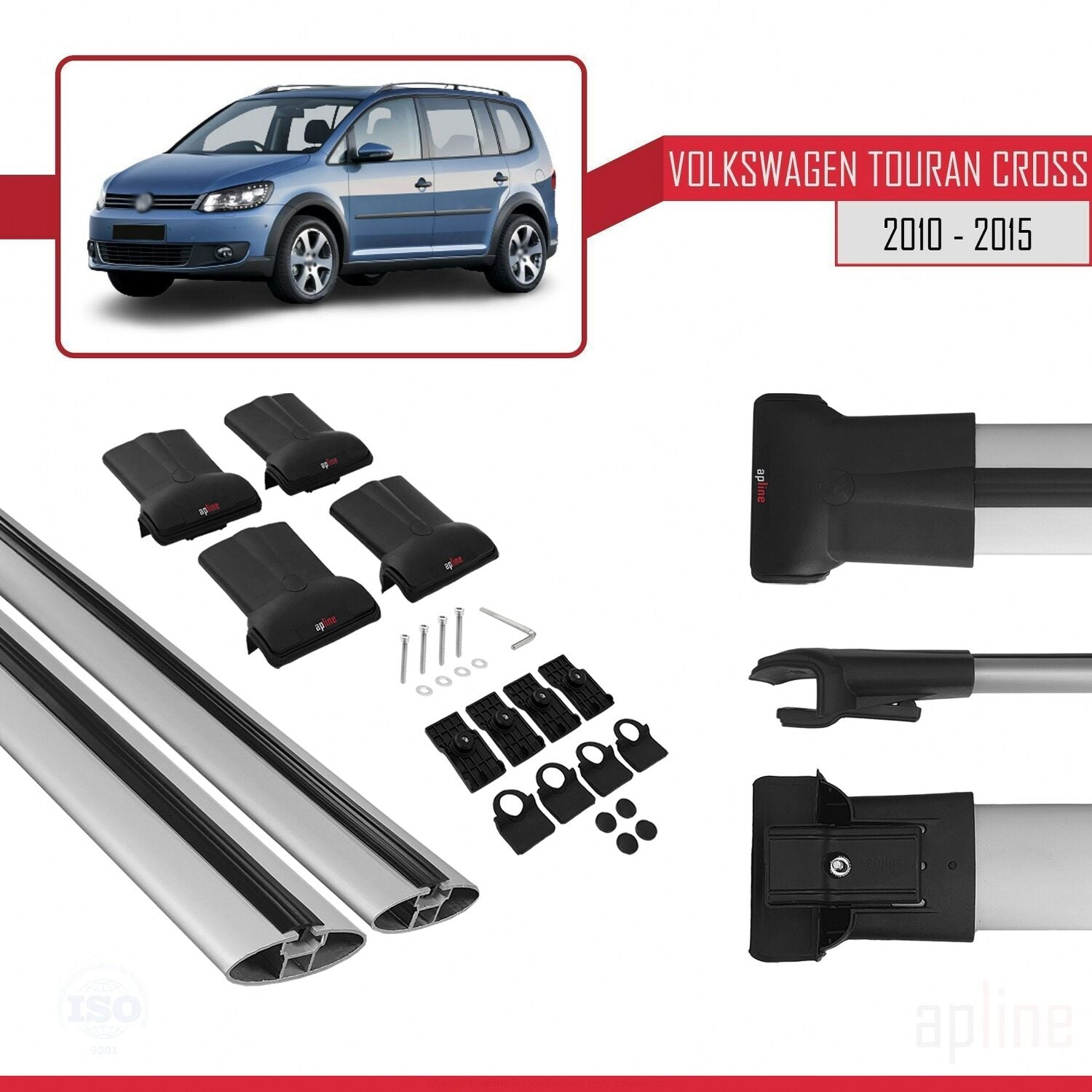 Compatible avec Volkswagen Touran Cross Post-Facelift 2010-2015 FLY Model Barres de Toit Railing Porte-Bagages de Voiture Gris Aluminium 2 Barres