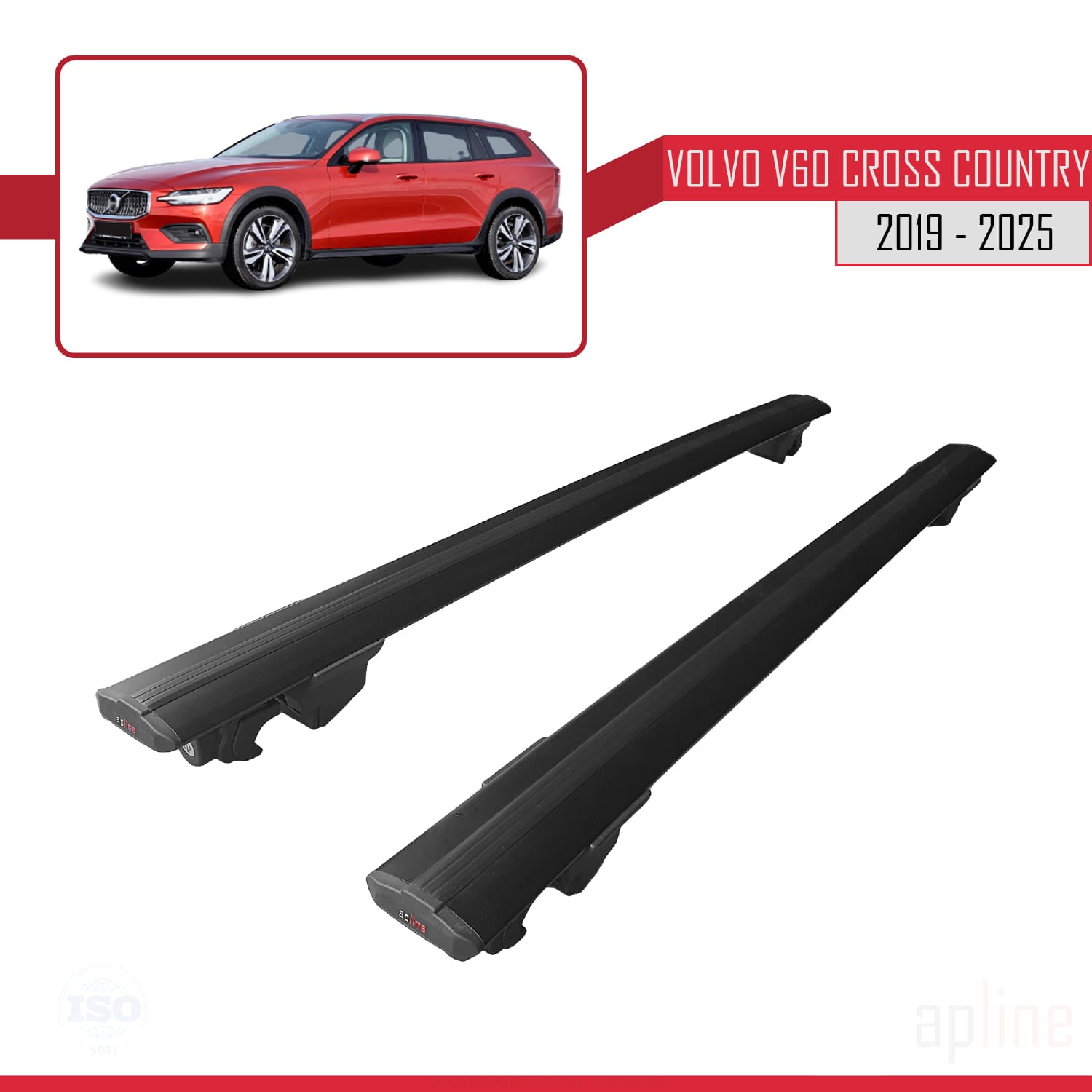 Compatible avec Volvo V60 II Cross Country 2019-2024 HOOK Model Barres de Toit Railing Porte-Bagages de Voiture Noir Aluminium 2 Barres