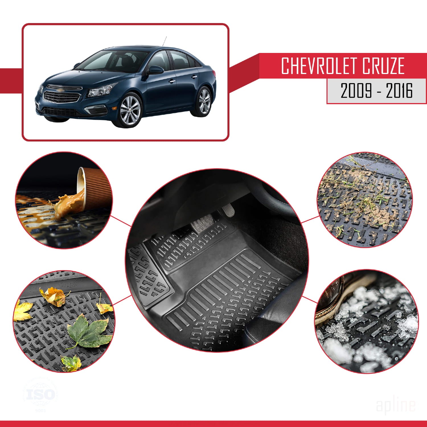 Tapis de Sol pour Chevrolet Cruze 2008-2016 Inodore 4D Tapis en Caoutchouc NOIR